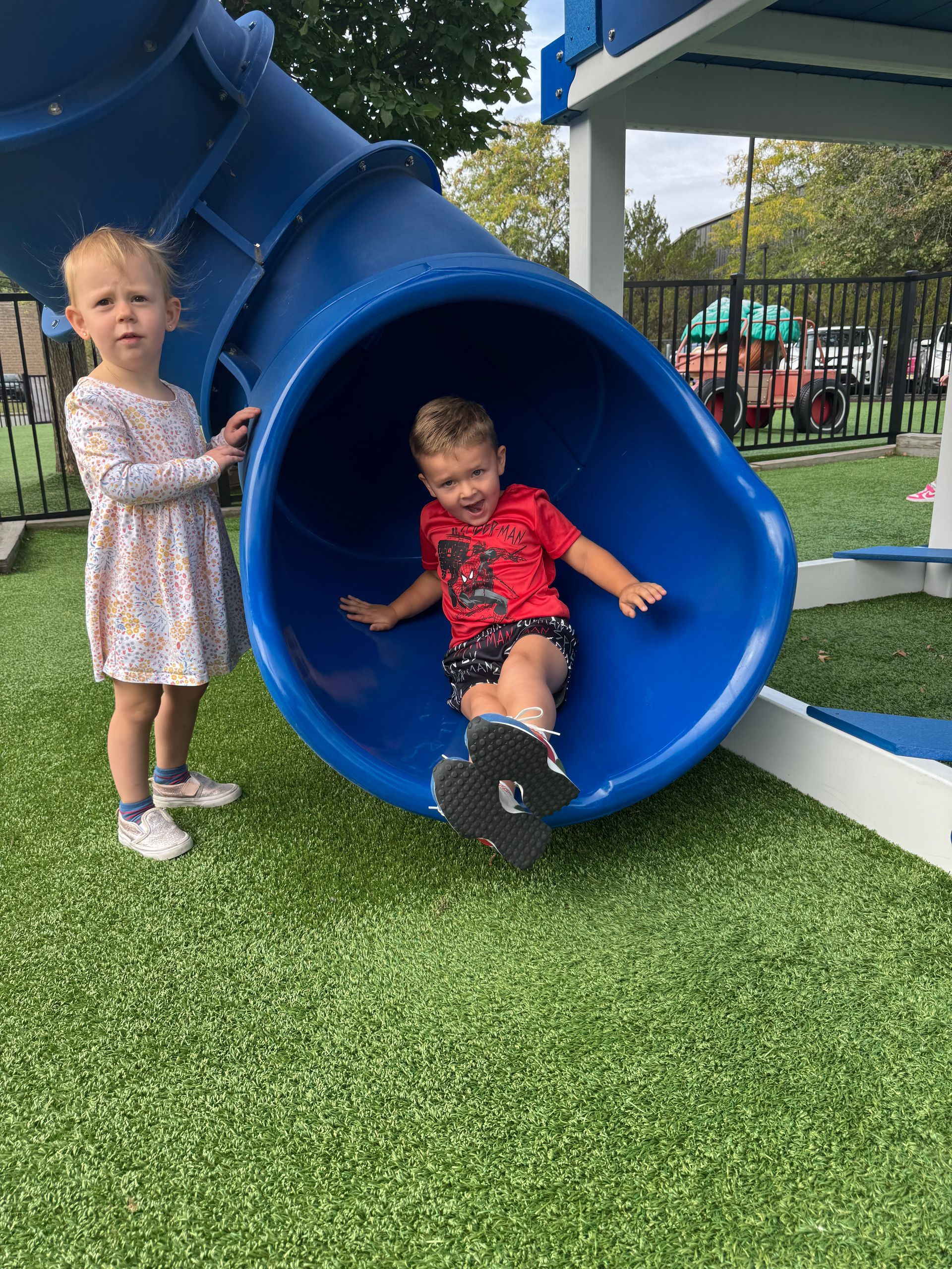 This location offers a Science/art room, 2 indoor gyms, 10 classrooms, and a beautiful outdoor playground that is divided up into 3 sections for the kids to play in.